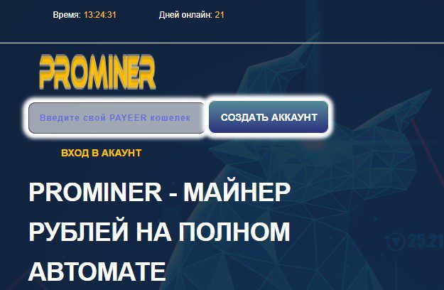 Prominer — сайт, который предлагает вкладываться в «майнинг рублей» и получать большой пассивный доход. Обещает честную работу, при этом занимается откровенным разводом публики на деньги.