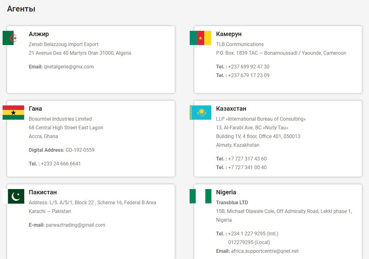 - Свяжитесь с нами (офисы в различных странах, глобальная поддержка — global.support@qnet.net, сети);