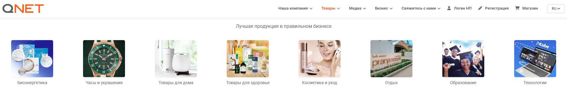 - Магазин (причем каталог и цены на товары доступны только на странице https://portal.qnet.net/ после регистрации на странице Магазин).