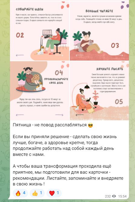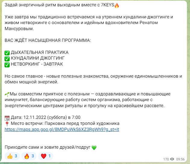 Телеграмм автор ведет с 2018 года, тем не менее там всего 200 подписчиков, которые не проявляют желания писать комментарии и ставить реакции. При этом охваты накручены и иногда в 4-5 раз превышают численность аудитории. Контент преимущественно информационный с низкой ценностью, есть реклама сторонних проектов, качество которых сомнительно.
