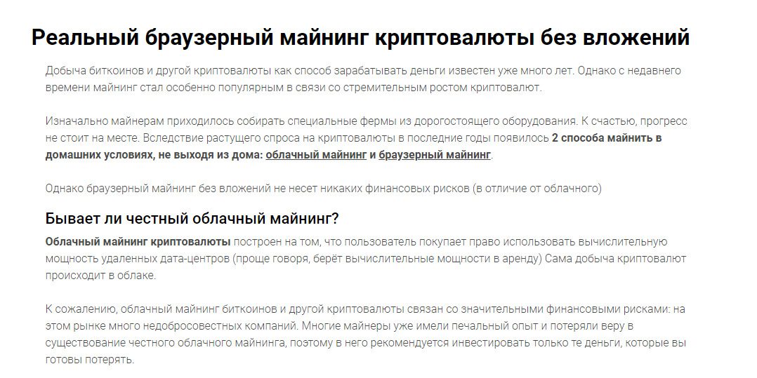 Обещания получения прибыли не обоснованы, работа компании недостаточно прозрачна. Это обычный лохотрон. Бесплатный майнер работает со сбоями и медленно, а платные никогда не окупятся.