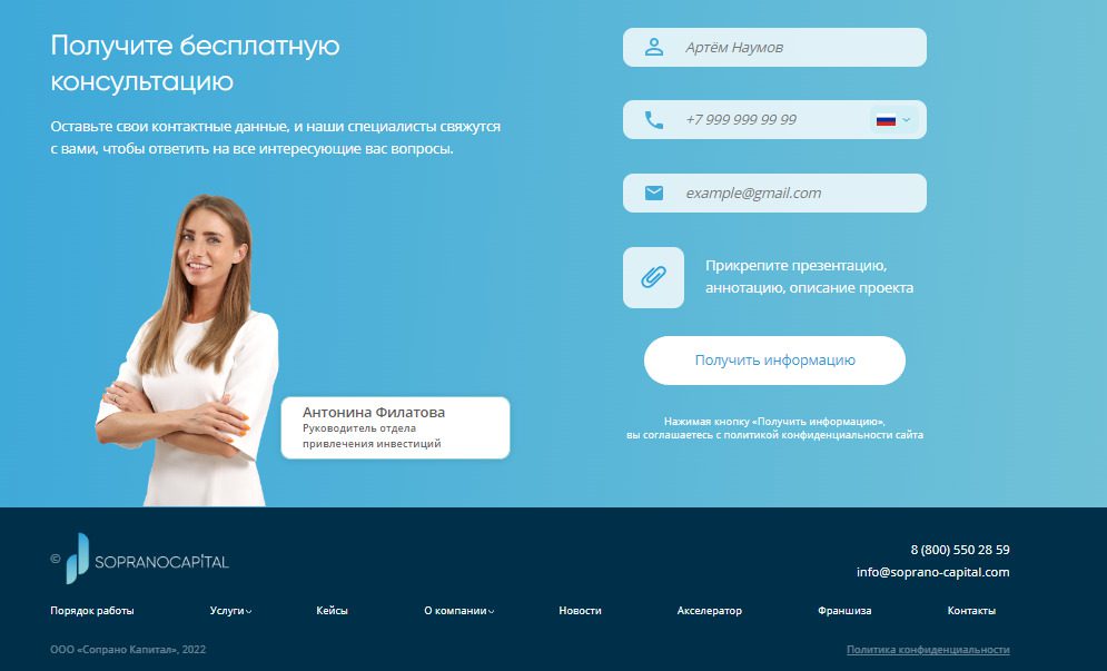 - для привлечения клиентов обязательно нужно получить несколько платных консультаций и у специалистов Сопрано Капитал и не забыть внести депозит на привлечение лидов.