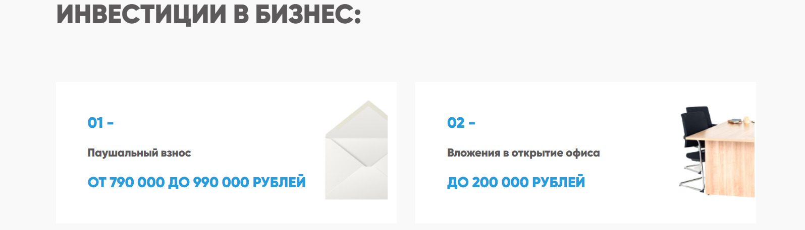 - клиенту необходимо оплатить паушальный взнос, который варьируется от 790 до 990 тысяч, а открытие офиса обойдется еще в 200 тысяч дополнительно;