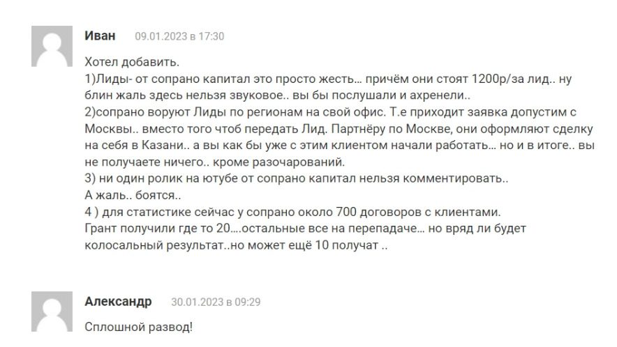 Сопрано Капитал: отзывы в сети
