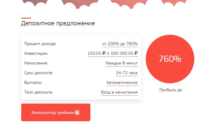 Главным признаком, что Startupstar является лохотроном, является прибыльность, которую он обещает своим «инвесторам». На сайте заявляется о доходности в 760% за трое суток. Деньги будут начисляться небольшими частями через каждые 8 минут. Нет на свете инвестиционных инструментов, которые приносили бы подобную доходность гарантированно. Цифры вроде этих могут гарантировать только те, кто разводит своих пользователей.