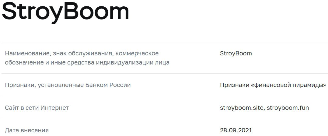 - блокировка stroyboom.fun и stroyboom.site ЦБ РФ;