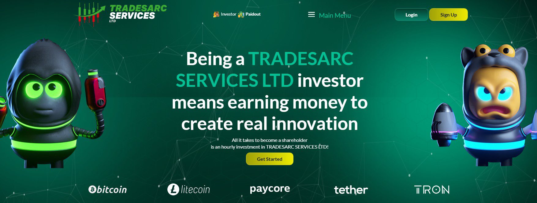 Trades arc — инвестиционный криптовалютный проект, который обещает вкладчикам почасовое начисление профита. Проект создан, по словам разработчиков, английской компанией Tradesarc Services LTD. Это общество на самом деле зарегистрировано в Великобритании, и занимается посреднической деятельностью на рынке недвижимости, но никак не инвестиционной, для которой нужны соответствующие разрешительные документы. И это только первый момент в характеристике проекта, который настораживает.