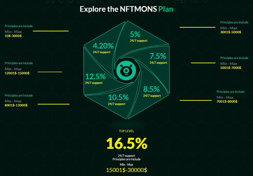 Рассмотрены семь вариантов инвестирования. Диапазон размеров депозитов существенный: первый план — $10-3000,а последний — $15001-30000. Совершенно очевидно, что дальше первого плана, мало кто пойдет, не говоря уже за все остальные. Прибыль указана за час и составляет на первом плане — 4,2%, что позволяет за сутки отбить свои вложения плюс 0,8% чистой прибыли, а на седьмом — 16,5%. Сумма депозита входит в будущие начисления, поэтому не подлежит возврату.