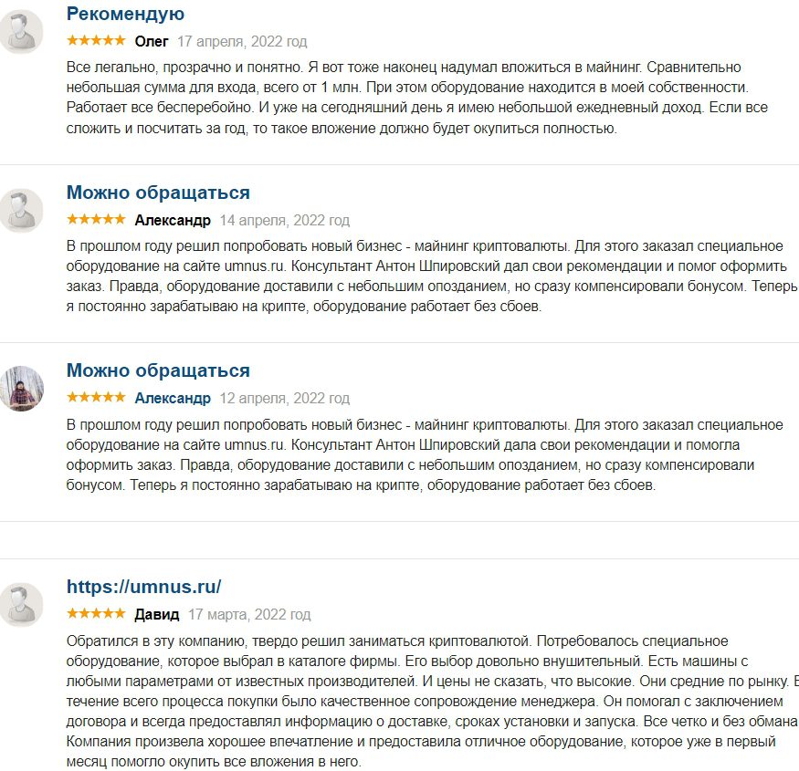 Umnus: отзывы об операторе промышленного майнинга