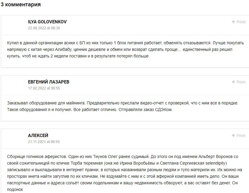 Умнус — фирма, работающая в сфере удаленного майнинга и продаж импортных ASIC для добычи крипты. Иван Сухиасов и команда поставляют устройства из Гонконга и КНР российским клиентам, качество которых в ряде случаев оставляет желать лучшего.