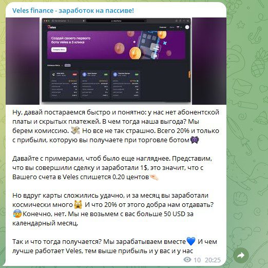 Боты Veles Finance – отзывы о мошенничестве компании