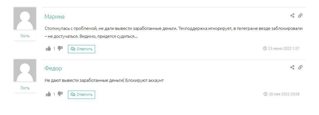 Реальные клиенты оставляют о компании только отрицательные отзывы. Veles Bot оказался на самом деле лохотроном, людям не выплачивают заработанные деньги, а счета блокируют без оснований. Это говорит о том, что перед нами очередные мошенники, пытающиеся заработать на популярной тематике криптовалют.
