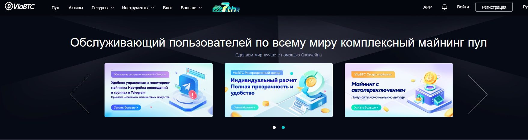 Viabtc — это майнинговый пул из Китая, созданный в 2016 году. На их сайте можно майнить различные криптовалюты, включая Bitcoin, Bitcoin Cash, Bitcoin SV, Ethereum, Litecoin, Zcash и Dash. Кроме того, они поддерживают некоторые экзотические токены, но их потенциал вызывает сомнения. ViaBTC также предлагает услуги облачного майнинга. Однако у них довольно высокие комиссии, а система защиты депозитов реализована неудовлетворительно.