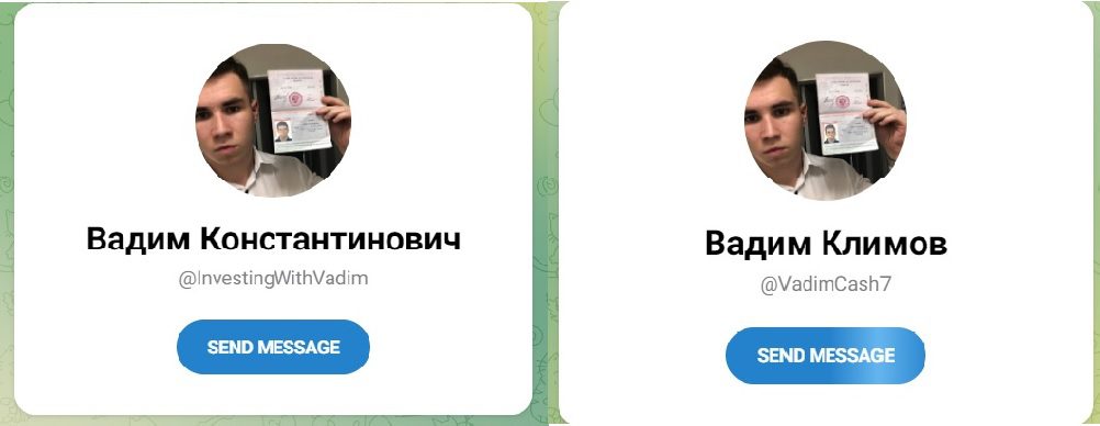 Сообщество в Телеграм “Вкус Победы” появилось в январе 2023 года, его владельцем, по легенде, является опытный каппер со стажем 5 лет, который работает под ником Investingwithvadim. Он представился как Вадим Константинович Климов и даже предоставил свое фото с паспортом. Но это единственное доказательство, других фото или видеообращений в паблике нет.
