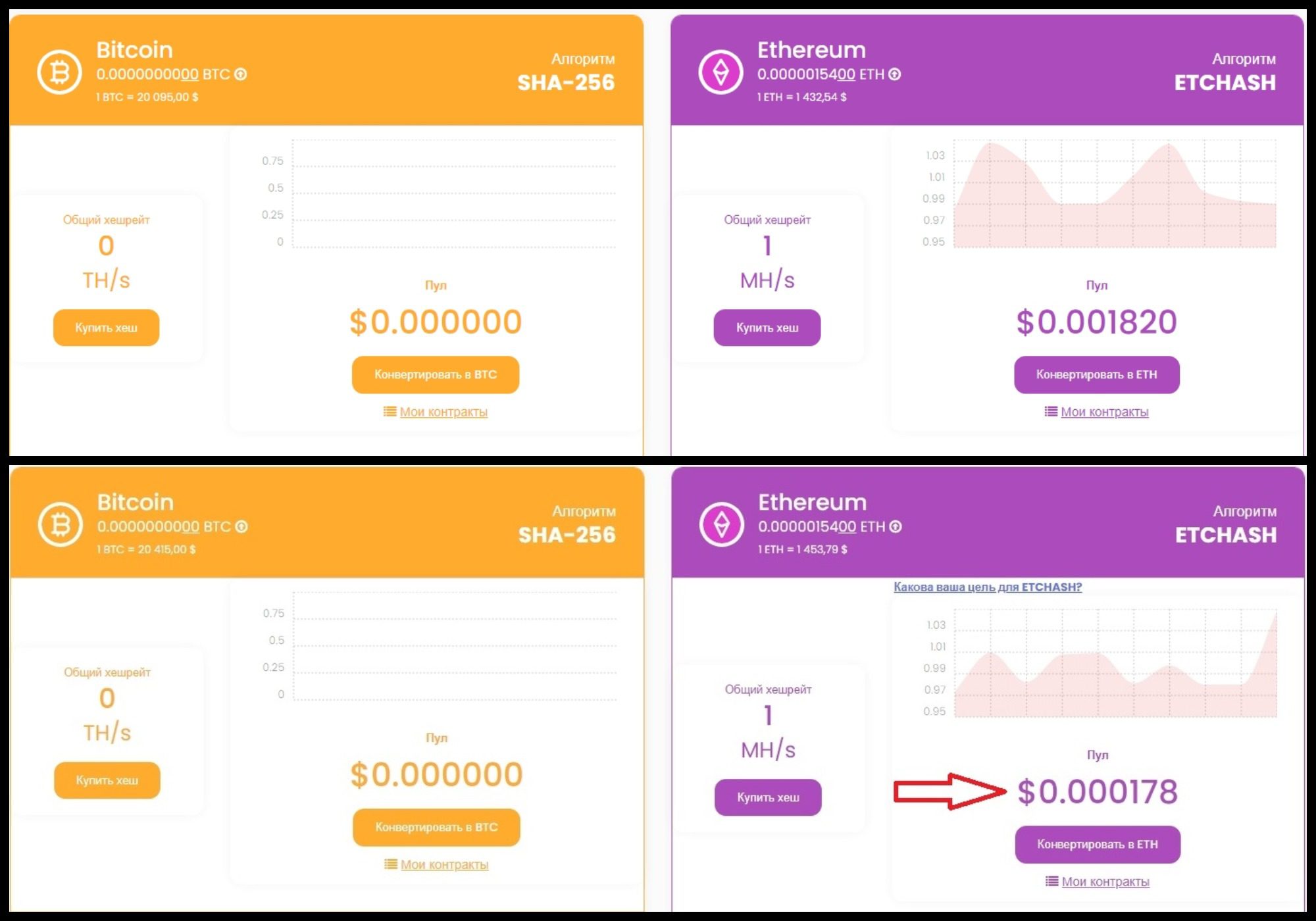 За несколько часов кран Ethereum смог намайнить порядка 0,001 ETC при скорости 1 MH/s, однако подтвердить реальность выкладок в ЛК невозможно. Вероятно, диаграммы предназначены лишь для раскрутки на депозиты, которые жизненно нужны создателям для поддержания работоспособности хайпа.