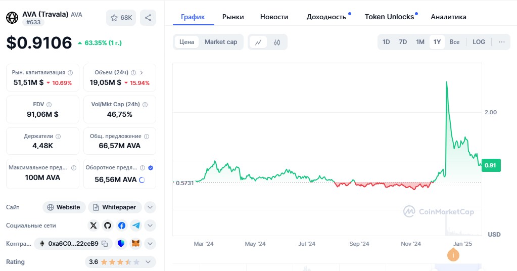 AVA – это токен сервиса для бронирования путешествий travala.com, где можно расплачиваться криптой. Компания внедряет ИИ-технологии в свою работу, оптимизирует ими поиск предложений и переводы.
