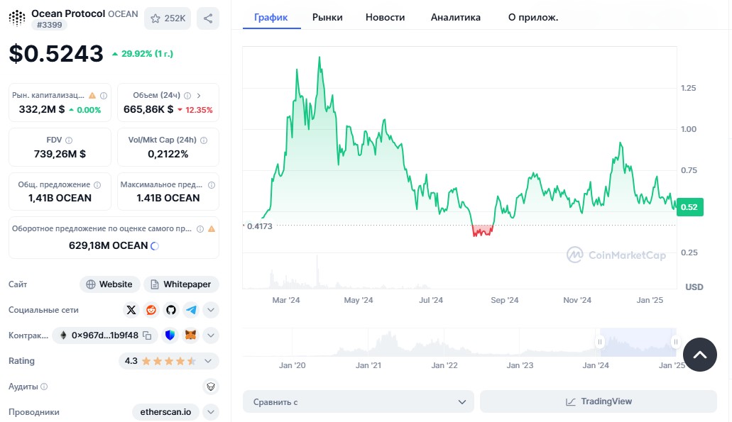 На платформе Ocean Protocol юзеры делятся своими данными и получают за это оплату монетками OCEAN. Затем по этим данным разработчики станут обучать ИИ-агентов. Ocean Protocol – огромный рынок, где покупают/продают какую-то информацию.