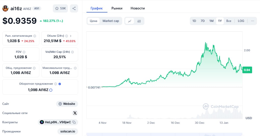Проект AI16Z намерен сочетать венчурные инвестиции и криптоактивы с ИИ, и это ему вполне удается! Компания вкладывает стартапы и перспективные технологии в крипте, да и сама нередко запускает годные ИИ-продукты.