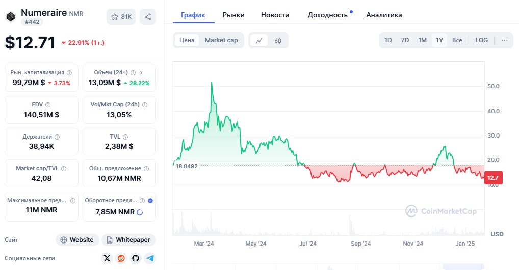 Проект Numeraire сочетает в себе финансы и машинное обучение в блокчейне. Платформа регулярно организовывает соревнования – среди разработчиков торговых алгоритмов. Лучшие девелоперы вознаграждаются токенами NMR.