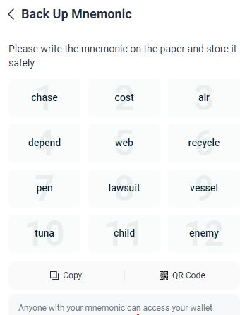- Загрузив приложение, проходим быструю регистрацию. И самое важное – back up mnemonic, без прохождения бэкапа, подключить кошелек не выйдет.