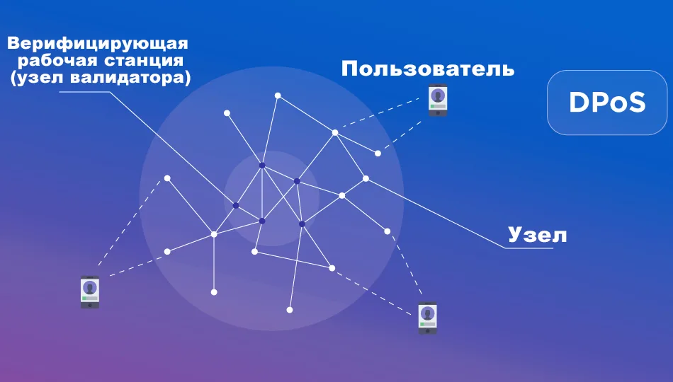 - Алгоритм консенсуса DPoS (Delegated Proof of Stake), позволяющий обрабатывать транзакции в срок до 2 минут. В скорости он значительно превосходит стандартный PoW, который используется в БТС.