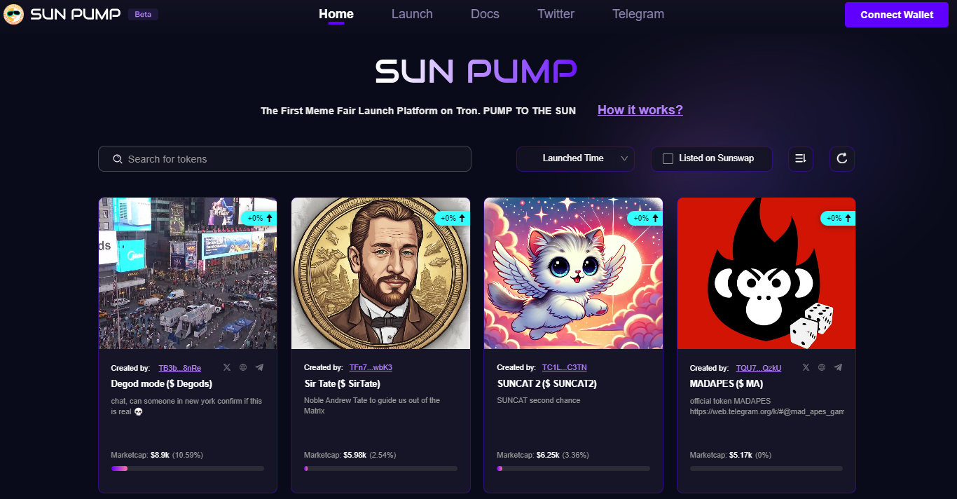 Sun pump meme – достаточно новая платформа в экосистеме TRON, служащая для запуска и поддержки memecoin. В мире блокчейн-технологий подобные сервисы именуются лаунчпадами или генераторами, они нужны создания токенов из популярного контента сети, и дальнейшей его монетизации.