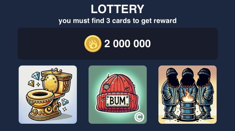 Самая прибыльная функция в игре Bums, это «Ежедневное комбо», которая принесёт 2 миллиона монет за выполнение простейшей задачи. Вам потребуется подобрать комбинацию из трёх определённых карт, но чтобы сэкономить вам сил и время, мы приложим актуальную комбинацию ниже: