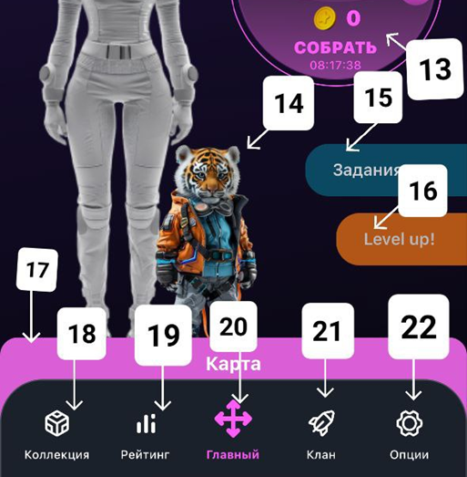 16. Кнопка для повышения уровня вашего пета;