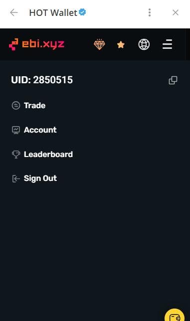 EBI ID находится в настройках вашего профиля на сервисе EBI Exchange. Еще его можно посмотреть в самом ТГ-кошельке, если зайти там в аккаунт DEX EBI. Чтобы найти EBI ID, авторизуйтесь на сайте EBI Exchange. Потом откройте свой профиль – раздел «Безопасность». Найдите вкладку «Кошельки», EBI ID будет указан рядом с основным адресом кошелька. Либо зайдите в аккаунт EBI Exchange в ТГ через Hot Wallet и нажмите на три полоски в правом верхнем углу.