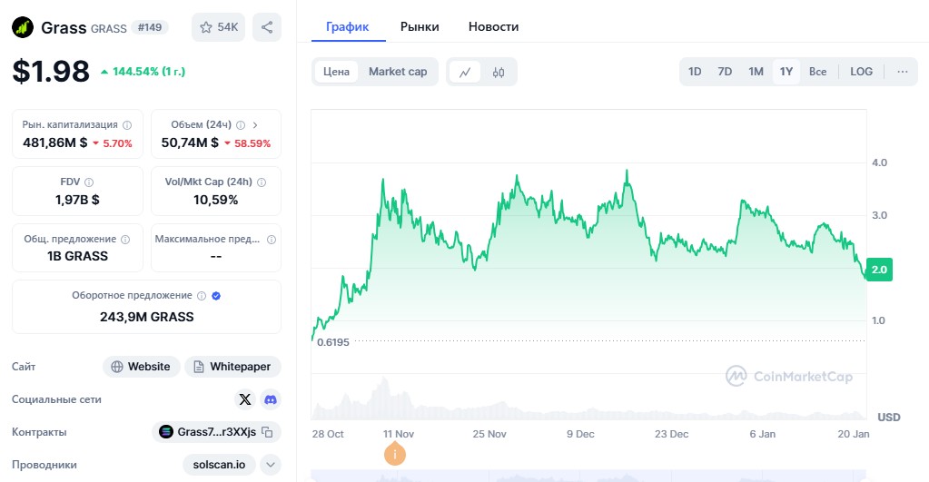 Экологически чистая энергия сегодня актуальна, так что у Grass есть все шансы плотно закрепиться на рынке. Эксперты считают, что у монетки GRASS большой потенциал для роста в долгосроке.
