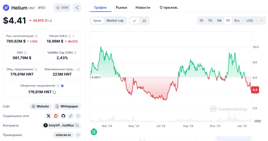 Helium считается одним из самых толковых DePIN-проектов, а в 2025 году команда обещает расширить сеть и запустить новые сервисы. Профессиональные криптаны ожидают, что токен HNT еще неплохо подрастет.