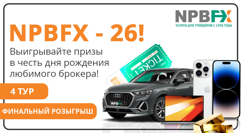 Пополняйте счет в NPBFX, получайте билеты – торгуйте на выгодных условиях и выигрывайте ценные призы в честь 26-летия брокера! Открыть счет