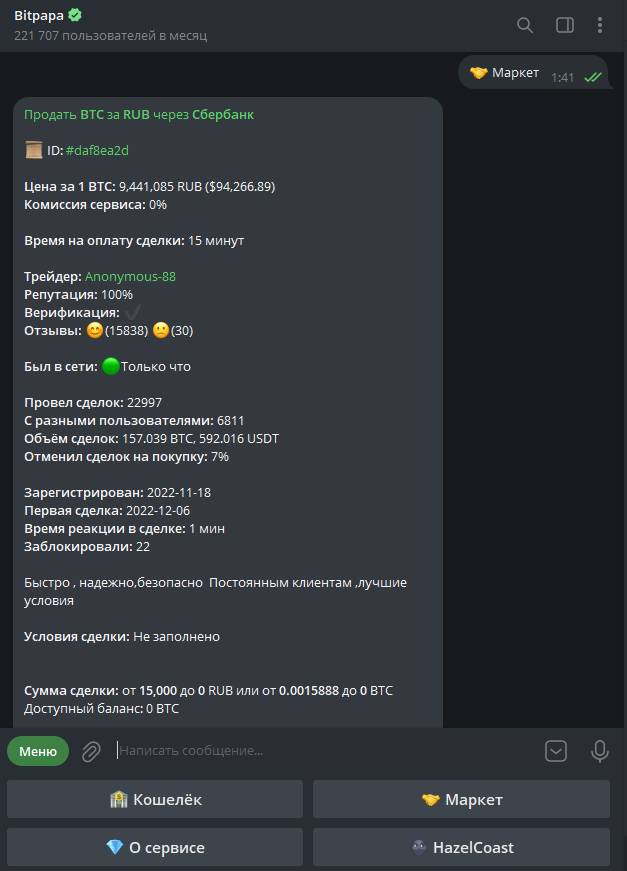 - огромная популярность самого мессенджера, ведь им пользуются не только трейдеры, что дает широкую аудиторию для быстрого P2P трейдинга;
