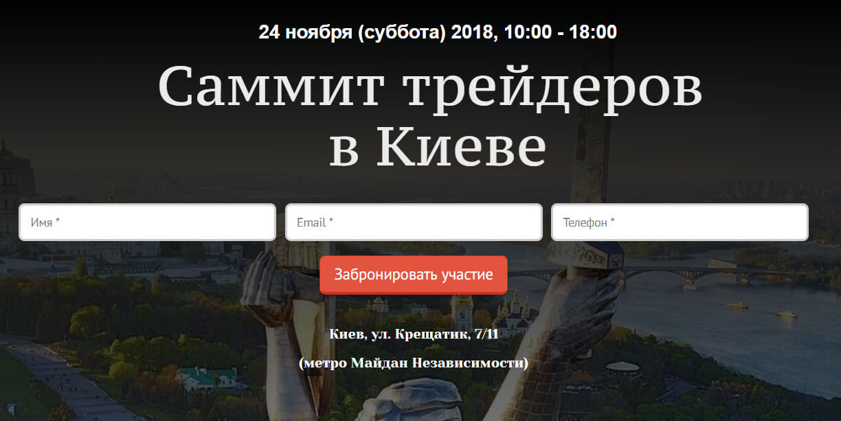 24.11.2018 в Киеве будет проведен “Саммит трейдеров”, основная тема: финансовые рынки. Где и когда: с 10:00 до 18:00 по адресу — Киев, ул. Крещатик, дом 7/11.