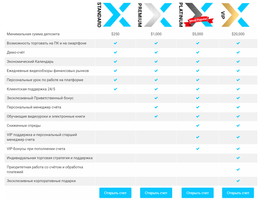 Минимальный депозит Xtrade на тарифе Стандарт составляет 250$. Это весь стартовый капитал, что вполне посильная сумма для многих. На самом деле, такая сумма не позволит зарабатывать соразмерно зарплате, но используя кредитное плечо можно попробовать. Это так называемый рычаг, который увеличивает ваши фактические средства для торговли бОльшими объемами. Например: у вас кредитное плечо 1:50, депозит 1000 дол, значит вы имеете возможность торговать сделками на 50 000 дол. Правда, не плохо? Осталось только научиться торговать прибыльно. Про это поговорим далее.