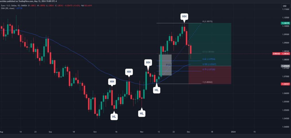 Да, фактически отметка 0.705 будет самой удачной точкой входа. Но весь интервал между 0.62 и 0.79 тоже можно считать зоной ОТЕ, просто с немного меньшей вероятностью разворота. В этом диапазоне риск и доходность оптимально сбалансированы.