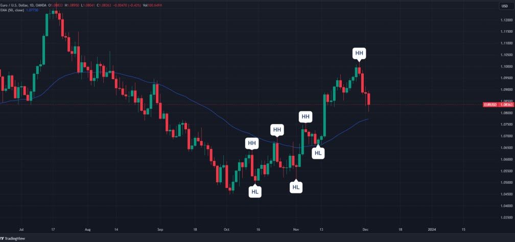 Чтобы исключить просадки, лучше миксовать ОТЕ с другими паттернами и индикаторами. Например, сочетать с волновой теорией Эллиотта или добавлять на график экспоненциальное скользящее среднее (EMA). Price Action или волновой анализ тренда помогут точнее определить swing high swing low и волатильность. Криптанам не стоит забывать и про корреляцию активов, ведь все монеты идут в ногу с папой-биткоином.