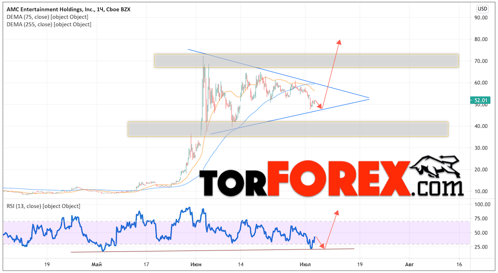Акции AMC прогноз и график на июль 2021