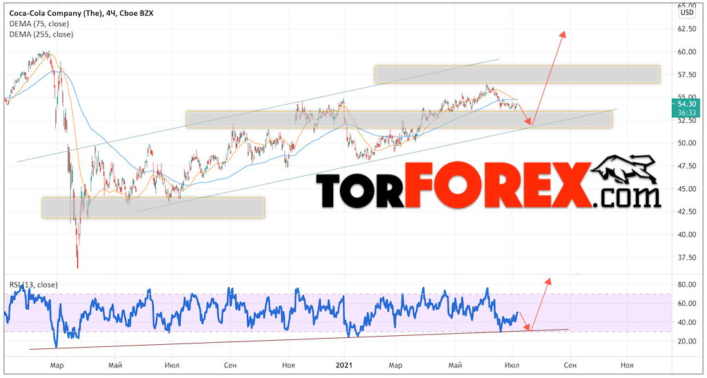 Акции Coca-Cola прогноз на июль и август 2021