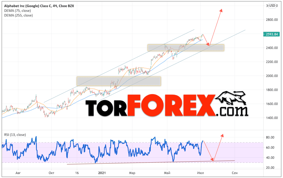 Акции Google прогноз и график на июль 2021