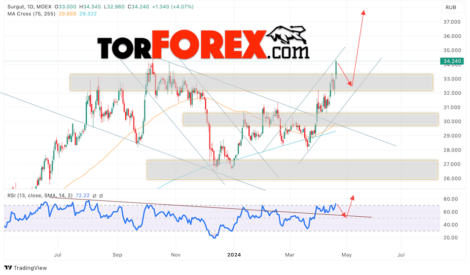 Акции Сургутнефтегаз прогноз на 22 — 26 апреля 2024