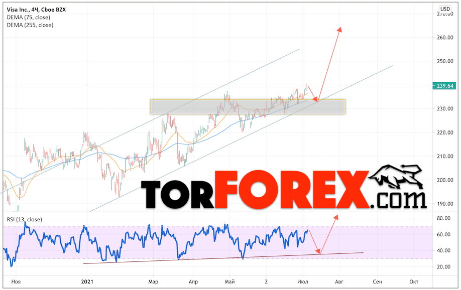 Акции Visa прогноз и график на июль 2021