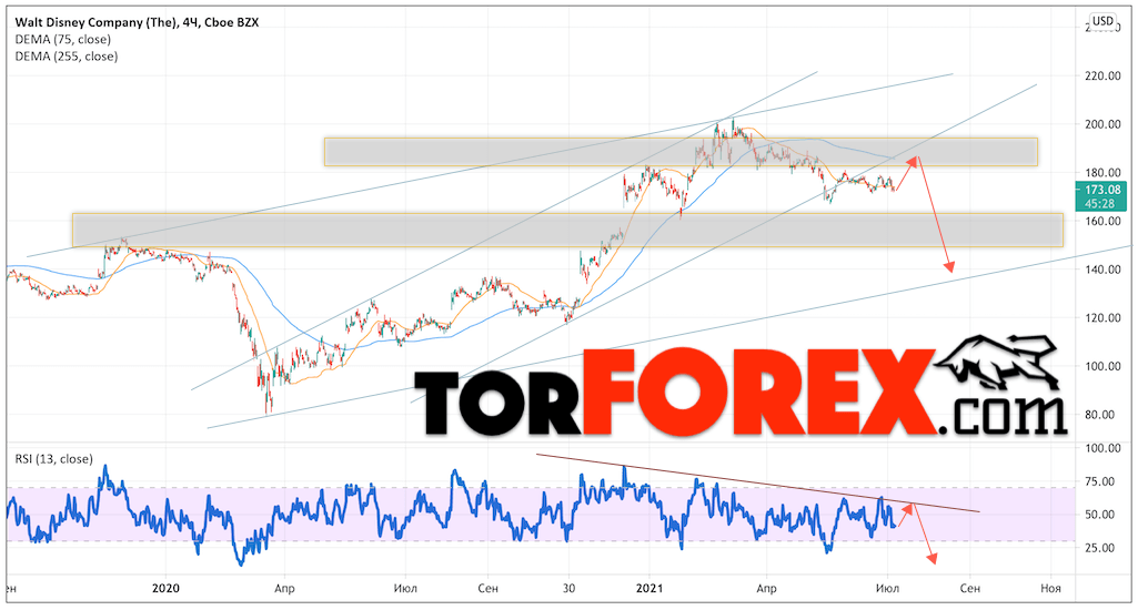 Акции Walt Disney прогноз на июль и август 2021