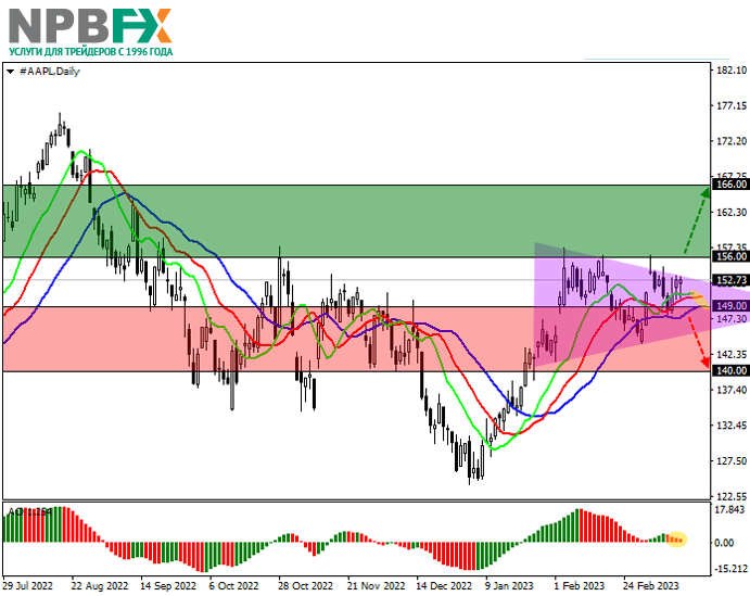 Акции Apple Inc., мирового гиганта в области разработки и продажи персональных и планшетных компьютеров, движутся в коррекционном тренде в районе отметки 152.00.
