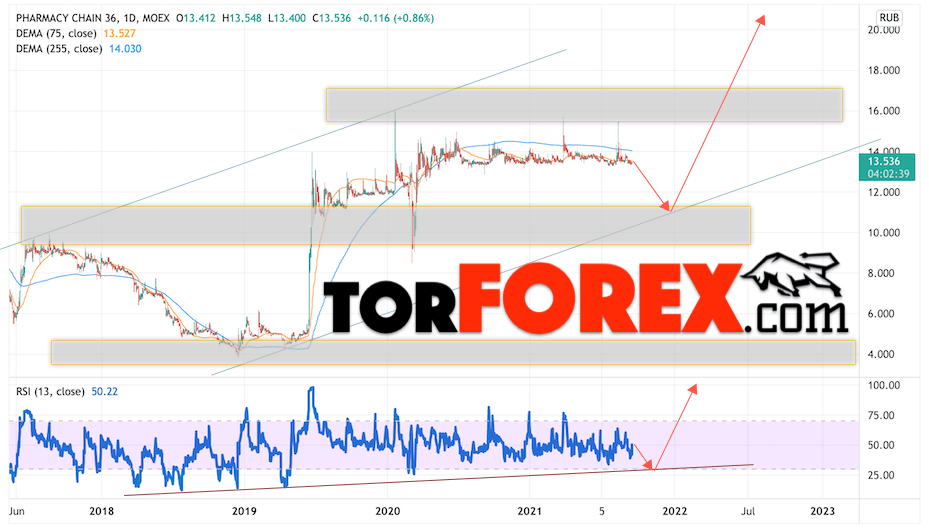 Стоит ли покупать или продавать акции Аптечная сеть 36 сегодня? До каких уровней могут расти акции этой компании через год, два, три? Сколько будут стоить бумаги Аптечная сеть 36 в 2021, 2022, 2023 годах? Мы давно составляем прогнозам курсов валют, а также можем предсказать поведение фондового рынка с помощью технического анализа и простых индикаторов.
