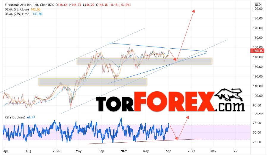 Мы также учитываем технический, фундаментальный анализ акций, новостной фон, общая геополитическая ситуация в мире и другие, более мелкие факторы. В прогнозах акций указаны целевые уровни для акций компании EA, причем как подъёма так и вероятного падения.