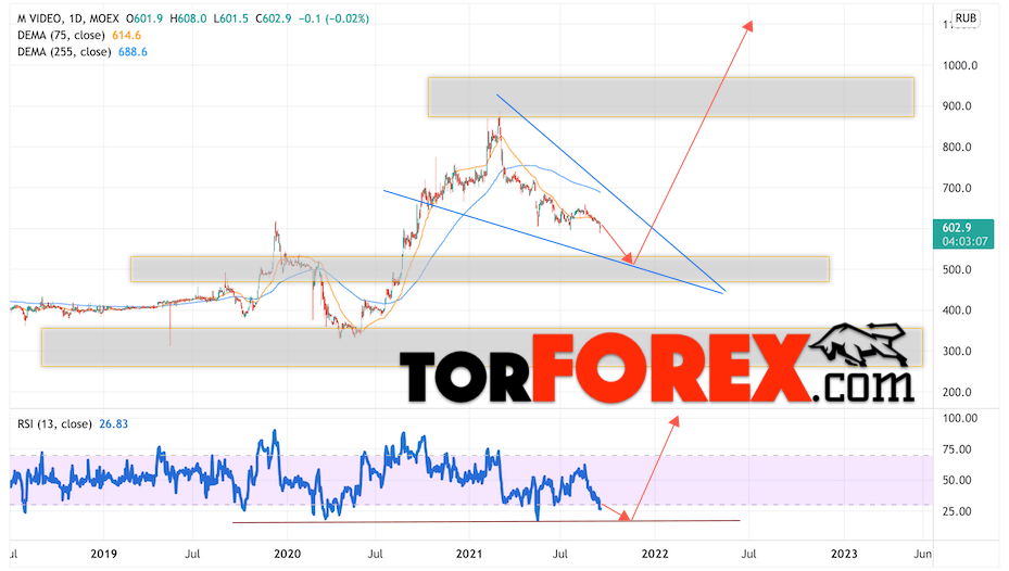 Стоит ли покупать или продавать акции М.видео сегодня? До каких уровней могут расти акции этой компании через год, два, три? Сколько будут стоить бумаги М.видео в 2021, 2022, 2023 годах? Мы давно составляем прогнозам курсов валют, а также можем предсказать поведение фондового рынка с помощью технического анализа и простых индикаторов.