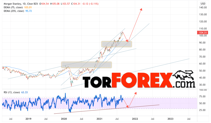 Стоит ли покупать или продавать акции Morgan Stanley сегодня? До каких уровней могут расти акции этой компании через год, два, три? Сколько будут стоить бумаги Morgan Stanley в 2021, 2022, 2023 годах? Мы давно составляет прогнозы курсов валют, а также можем предсказать поведение фондового рынка с помощью технического анализа и простых индикаторов.