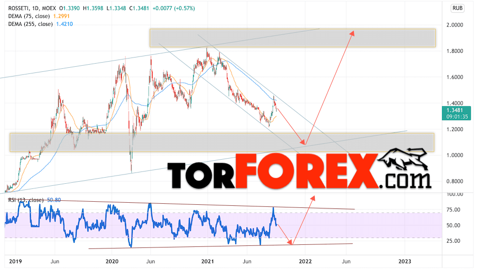 Стоит ли покупать или продавать акции Российские сети сегодня? До каких уровней могут расти акции этой компании через год, два, три? Сколько будут стоить бумаги Российские сети в 2021, 2022, 2023 годах? Мы давно составляем прогнозам курсов валют, а также можем предсказать поведение фондового рынка с помощью технического анализа и простых индикаторов.