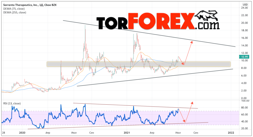 Sorrento Therapeutics прогноз на июль и август 2021